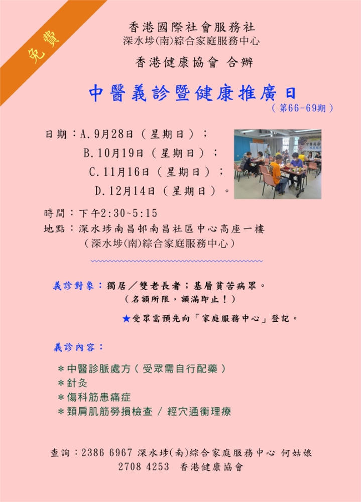 第三期 19年12月15日(星期日) 下午2:30~5:15 保健講座:下午3:00~3:30《經穴療法--紓緩腰膝痛》