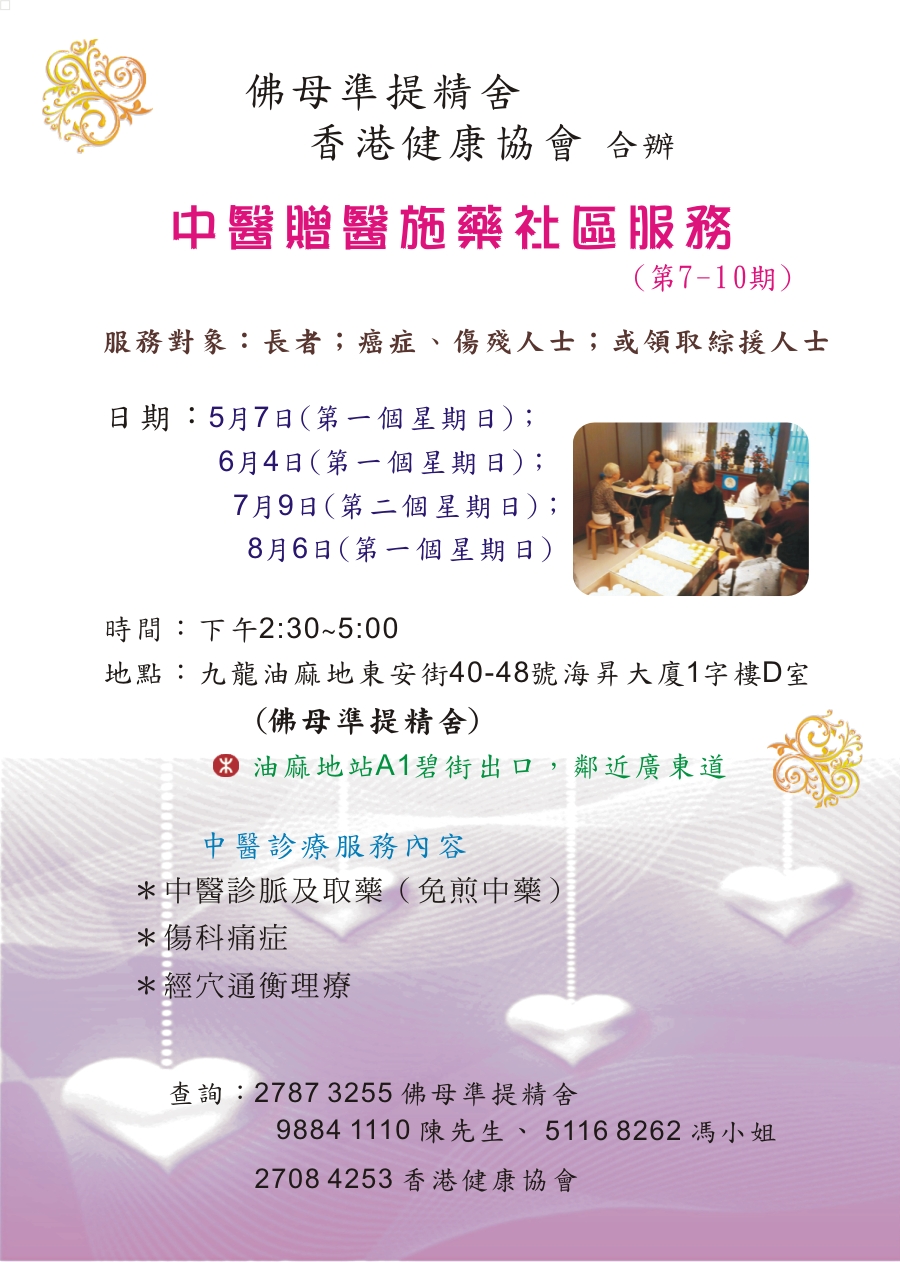 ![]() 病者行動不便,朱醫師經診脈處方後,由唐偉強經穴保健師(穿藍衫者)作經穴紓緩痛症治療 |