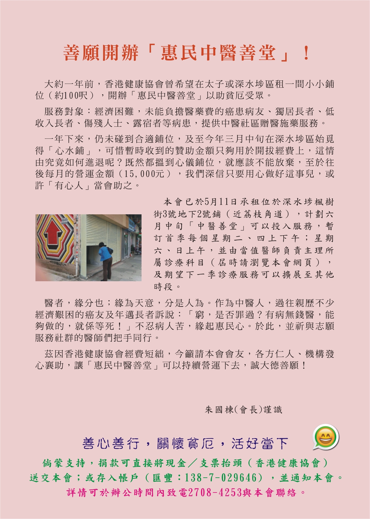 ![]() 惠民善堂盡量運用有限地方提供診療服務 |