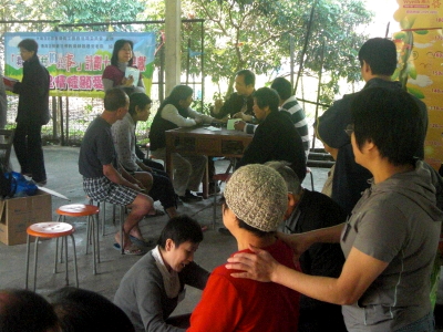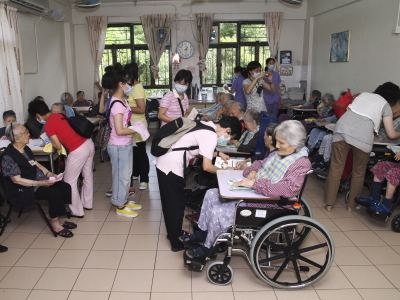 | 2010-1-16 義工探訪粉嶺萊洞村村民 | 2009-6-21 義工探訪佛教寶靜護理安老院 | |